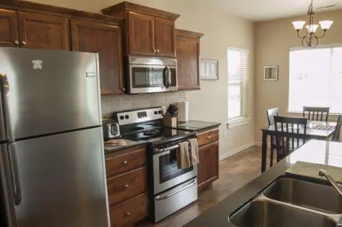 Short-term furnished apartments within a relaxed development set in mature landscaping in a residential neighborhood of Meridian, ID. Located by I-84 between Boise and Nampa, the development is in prime commuter territory, minutes from Idaho State University, Gramercy Village, Boise National Forest, Bernardine Quinn Riverside Park, Roaring Springs Water Park and St. Luke’s Meridian Emergency Department.