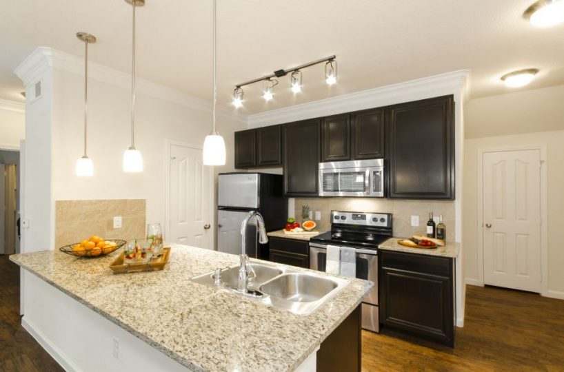 Apartment amenities can include 9’ or 10’ ceilings with fans, large windows with garden or pool views, private patio or balcony, climate control, garage parking, walk-in closets, carpet or hardwood flooring, a full bathroom with tub and a fully equipped kitchen with stainless steel appliances.