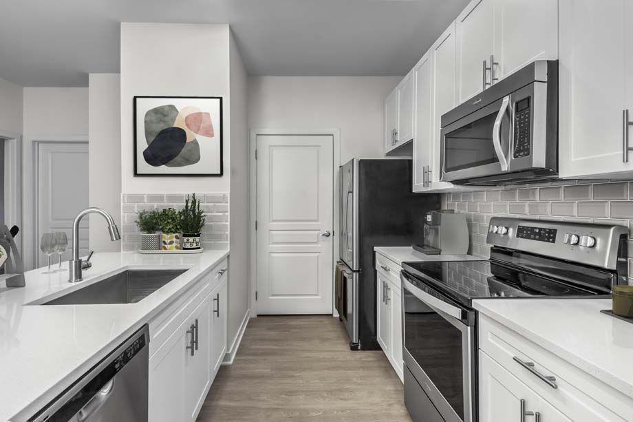 - Full kitchen with stainless steel appliances