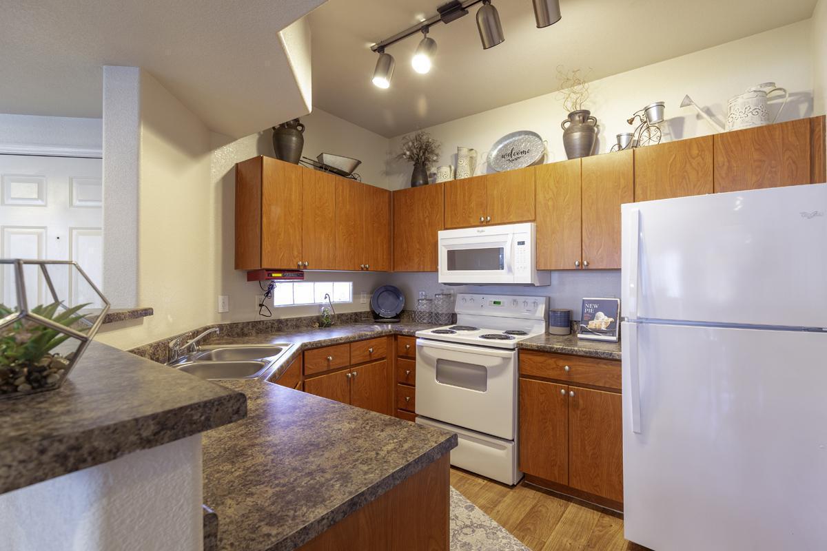 Apartment amenities can include 9’ ceilings with fans, air conditioning, private patio or balcony, large windows with blinds, desk area, hardwood or carpet flooring, cable TV, high speed internet, laundry facilities, walk-in closets, a full bathroom and a fully equipped kitchen with all appliances.