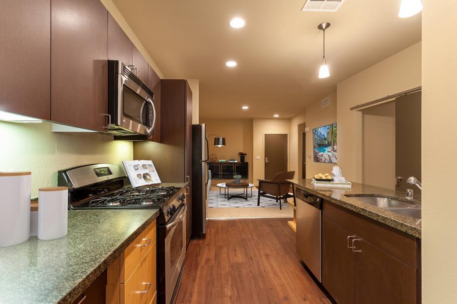 Apartment amenities can include high ceilings, private balcony or patio, air conditioning, large windows with blinds, hardwood or carpet flooring, cable or satellite TV, high speed internet, laundry facilities, walk-in closets, a full bathroom and a fully equipped island kitchen with all appliances.