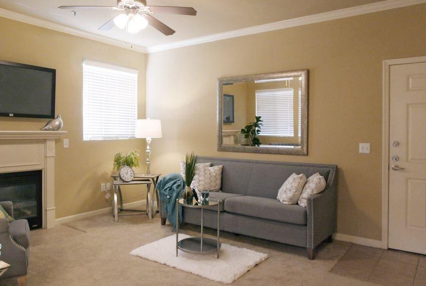 Apartment amenities can include 9’ ceilings with fans, private balcony or patio, air conditioning, large windows with views, hardwood or carpet flooring, fireplace, cable or satellite TV, high speed internet, laundry facilities, walk-in closets, a full bathroom and a fully equipped kitchen with granite countertops and stainless steel appliances.